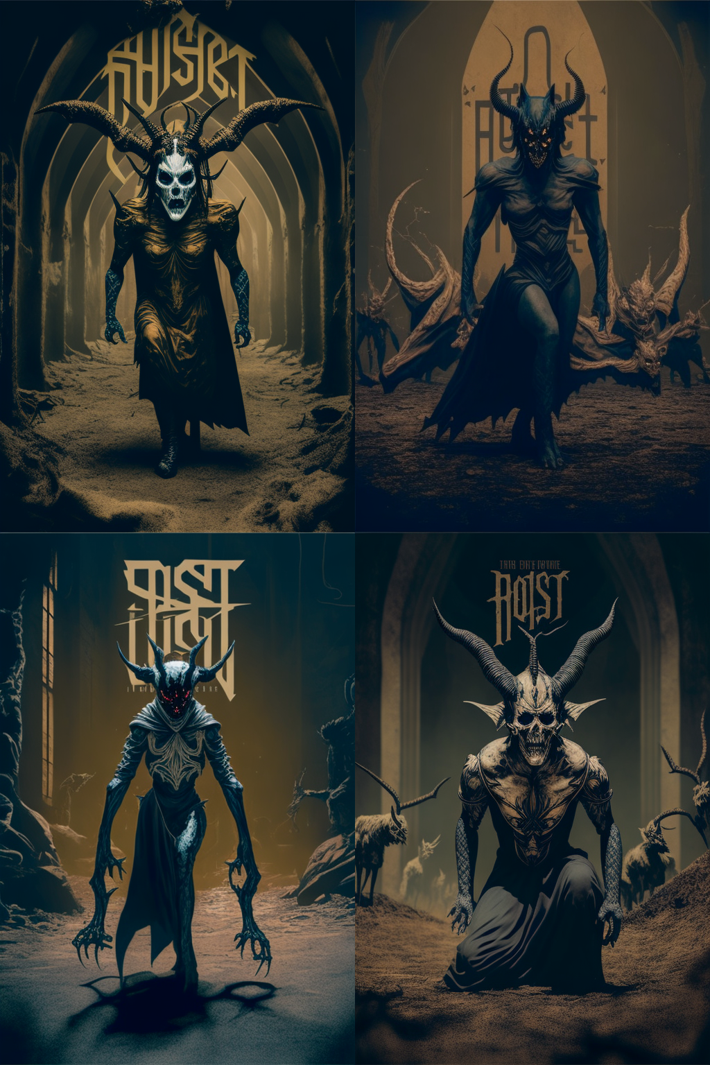The drape in the fabrics throughout the prompts brought out the posters portrayal of the Nameless Ghouls and Papa Emeritus III. Dark cloth rippling in shadows. A heavy grounded presence. And the happy accidents were always brilliant. How it chose to interpret background figures was beautiful at times. Mythical creatures surrounding a throne, twisted forms in darkness, robed figures in waiting.